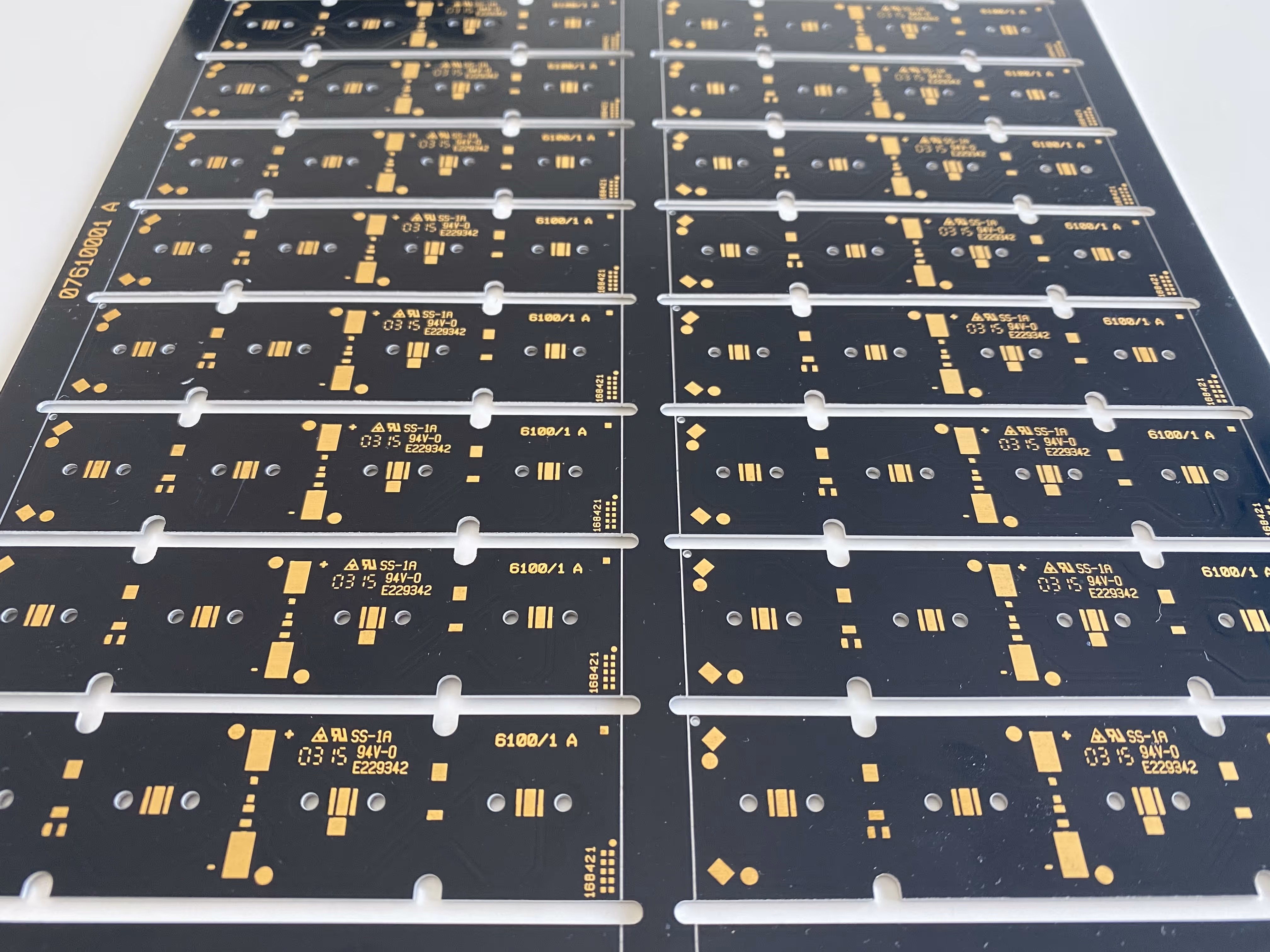Sunshine can also build LED boards with AL-cores for double-sided SMT applications. Plated through holes are isolated from the metal core with resin-filled holes.